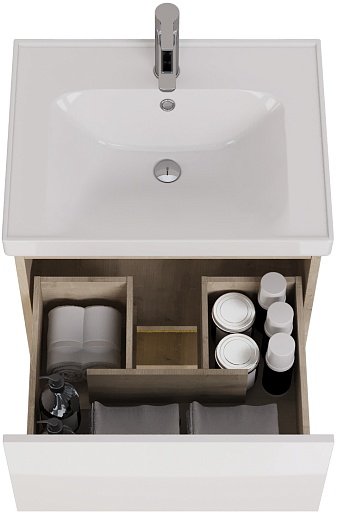 Тумба под раковину Perfecto 60 подвесная белая/дуб эврика