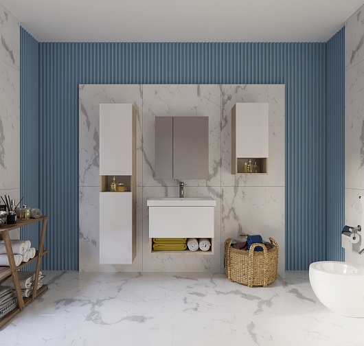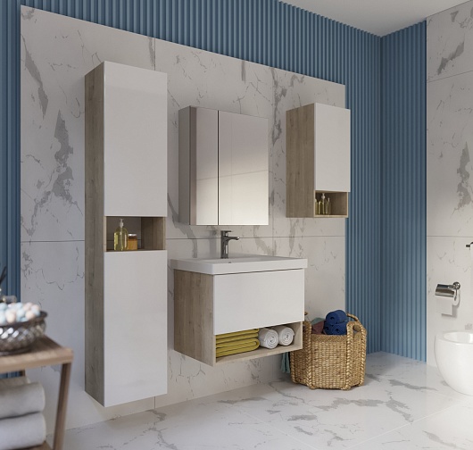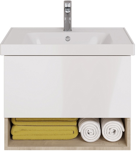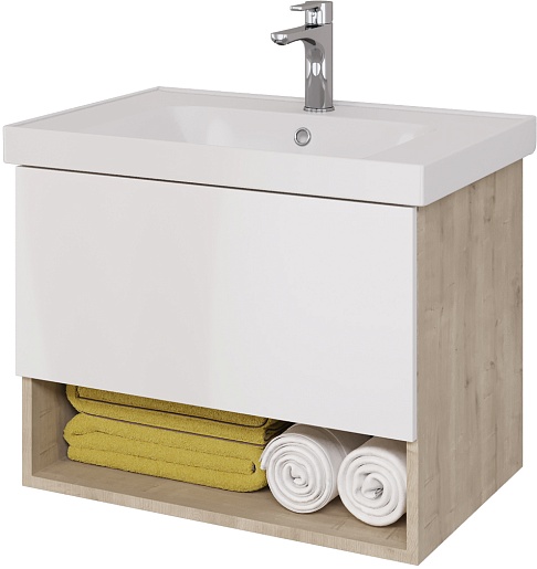Тумба под раковину Perfecto 70 подвесная белая/дуб эврика