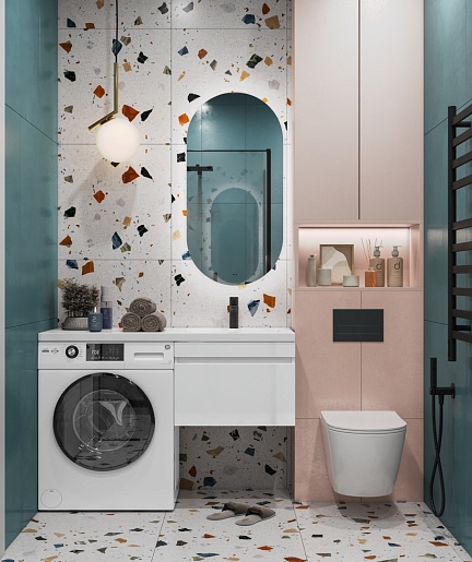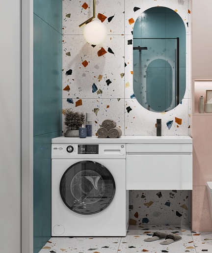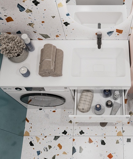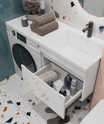 - Раковина из литьевого мрамора с крылом с левой стороны под установку стиральной машины.