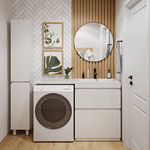 Тумба под раковину под стиральную машину Donna 130 напольная белый глянец эмаль