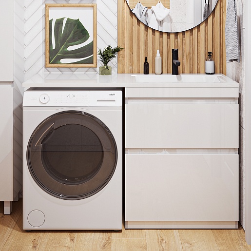 Тумба с раковиной под стиральную машину Vivon Donna 130R напольная белый глянец эмаль.