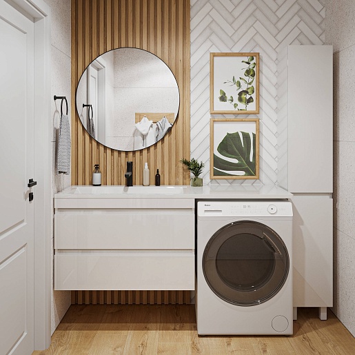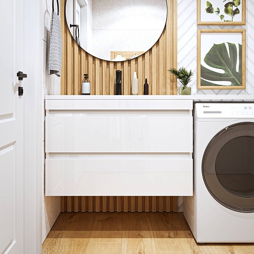 Тумба под раковину под стиральную машину Donna 150 подвесная белый глянец