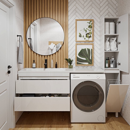 - Раковина из литьевого мрамора с местом для установки стиральной машины.