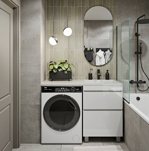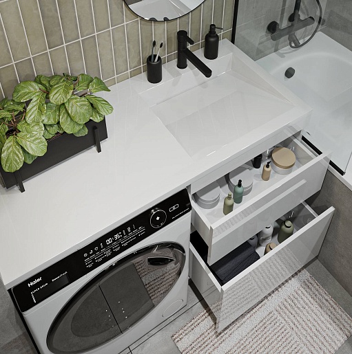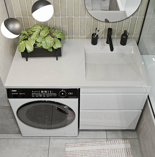 - Раковина из литьевого мрамора с крылом с местом под установку стиральной машины.