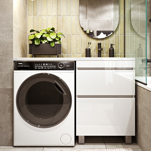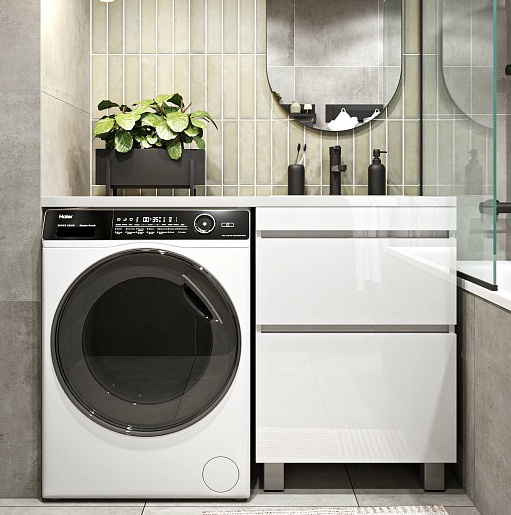 Тумба под раковину над стиральной машиной Harper 120 напольная белый глянец