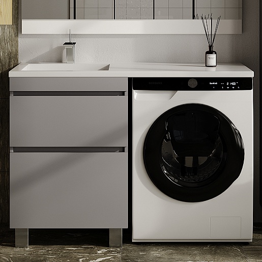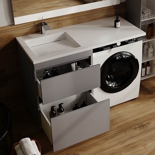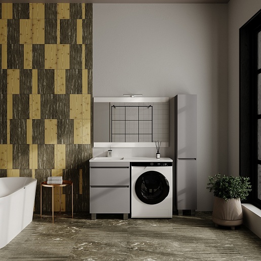 Style Line Тумба с раковиной под стиральную машину Леон 120 L Люкс Plus серая матовая
