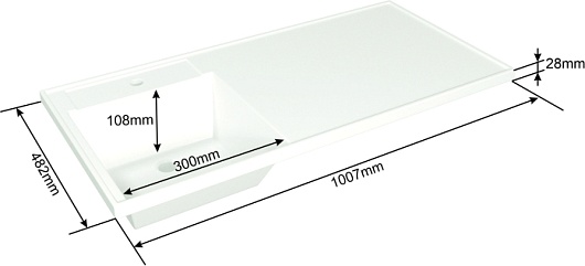 - Раковина из литьевого мрамора с правым крылом для установки над стиральной машиной.