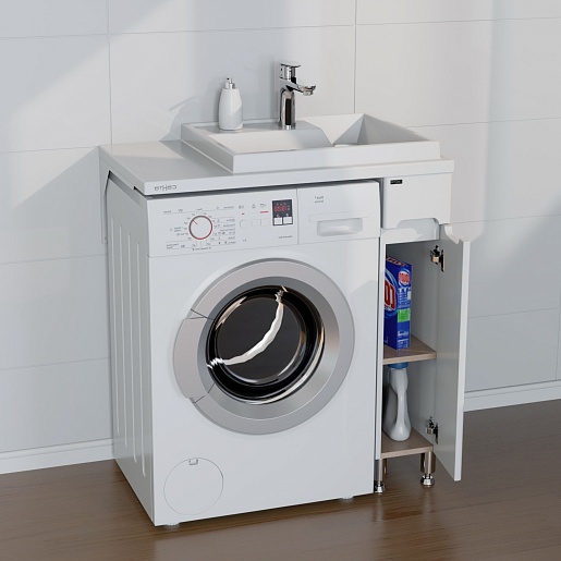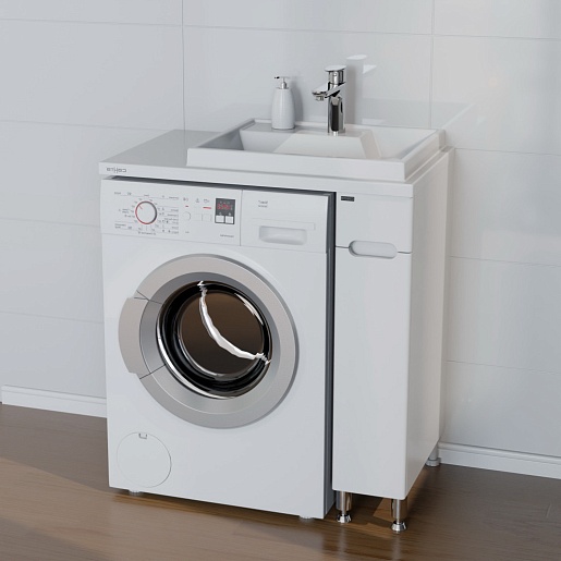- Раковина из литьевого мрамора с левым крылом для установки над стиральной машиной.