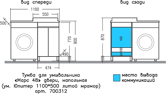 Напольная тумба с раковиной под стиральную машину Санта Марс 110 R - арт. 700312 / 900132 / 900123.