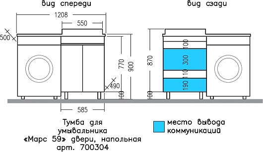 Напольная тумба с раковиной под стиральную машину Санта Марс 120 R - арт. 700304 / 900125 / 900123.
