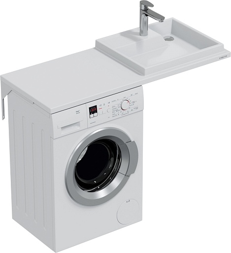 - Раковина из литьевого мрамора с левым крылом для установки над стиральной машиной.