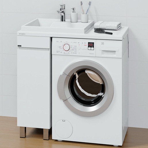 - Раковина из литьевого мрамора с правым крылом для установки над стиральной машиной.