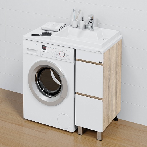СанТа Тумба с раковиной под стиральную машину Марс 90 R 2 ящика белая/янтарное дерево