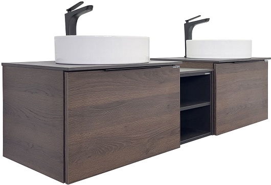 В комплекте: тумба Портленд 60 (2 шт.), тумба с нишей, раковина (2 шт.), столешница, крепеж.