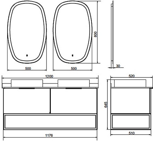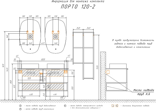 В комплекте: тумба, раковина (2 шт.), столешница, крепеж.