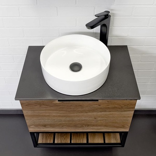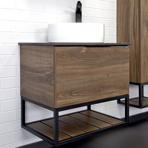 Comforty Тумба с раковиной Порто 60 9111 подвесная дуб темно-коричневый/черный муар