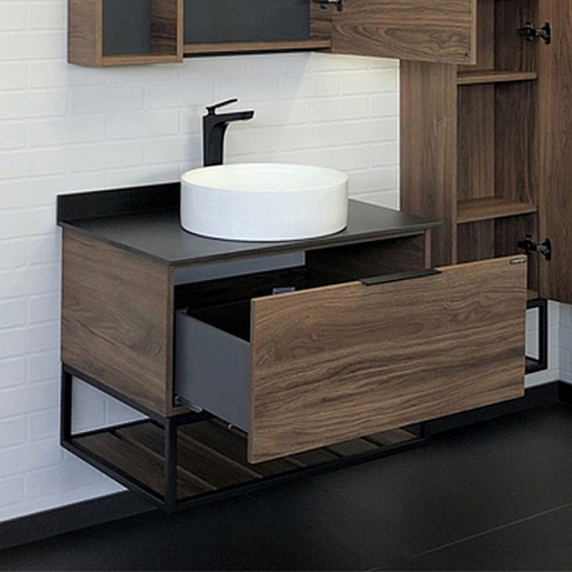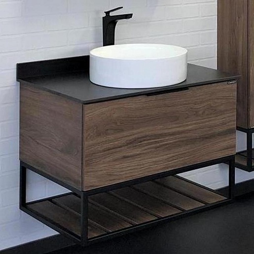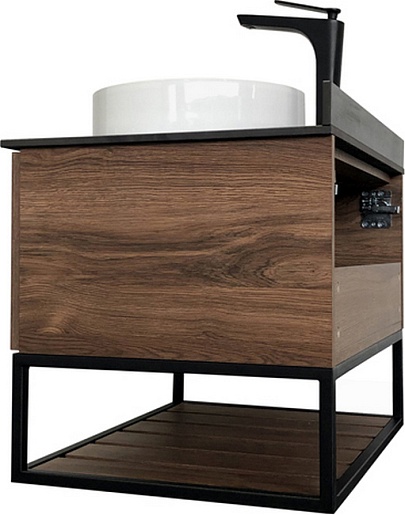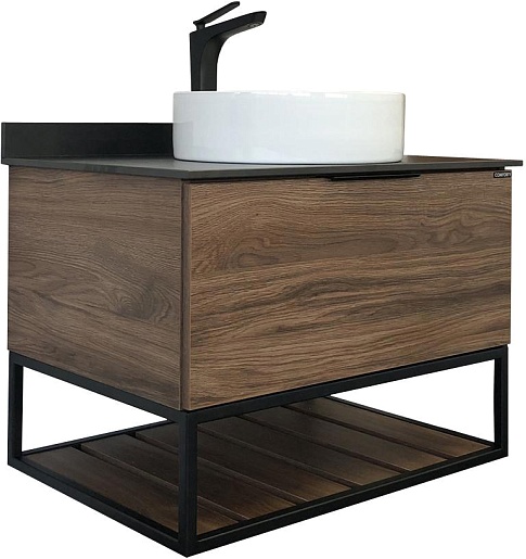 Comforty Тумба с раковиной Порто 75 9110 подвесная дуб темно-коричневый/черный муар