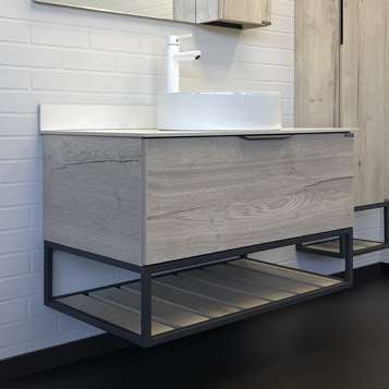 Comforty Тумба с раковиной Порто 90 9110 подвесная дуб дымчатый/серый графит