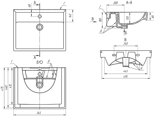 Подвесная тумба с раковиной Dreja Q (D) 55 - арт. 99.1007 / 195476.
