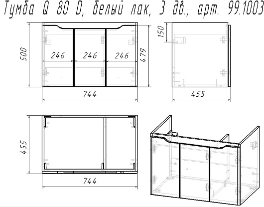 Подвесная тумба с раковиной Dreja Q (D) 80 - арт. 99.1003 / 192185.
