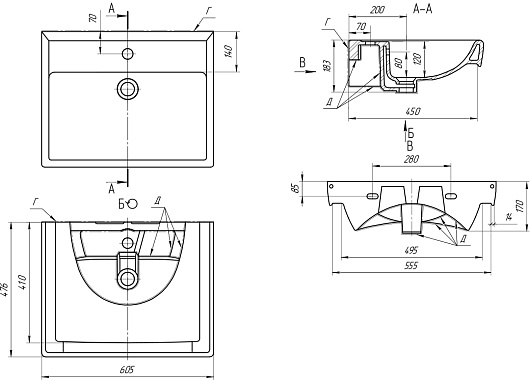 В комплекте: тумба, раковина, ножка (4 шт.), крепеж.