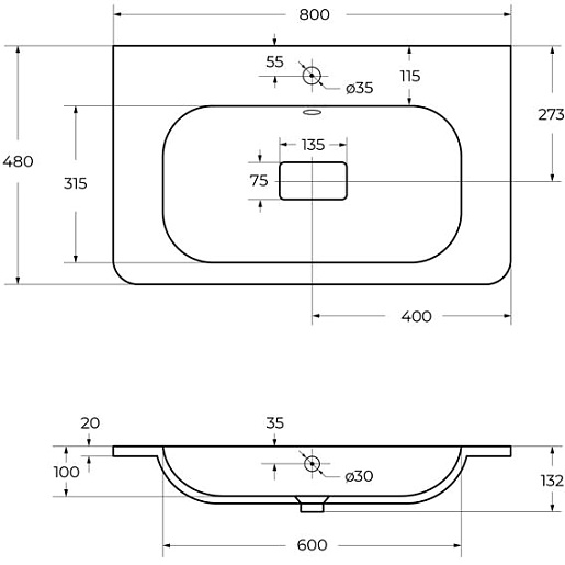 - Раковина из искусственного мрамора с одним отверстием под смеситель.