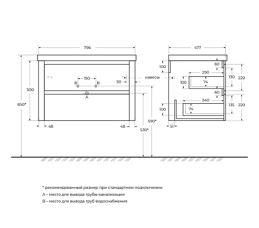Тумба под раковину Relax 80 подвесная сатин
