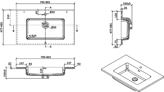 - Монтаж: подвесной.