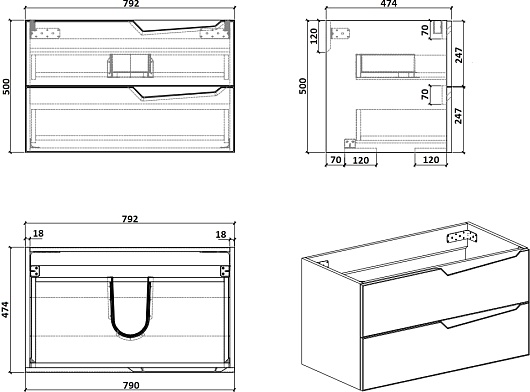 - 2 выдвижных ящика.
