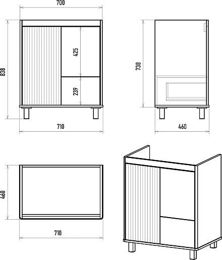 В комплекте: тумба, раковина, крепеж, комплект ножек.