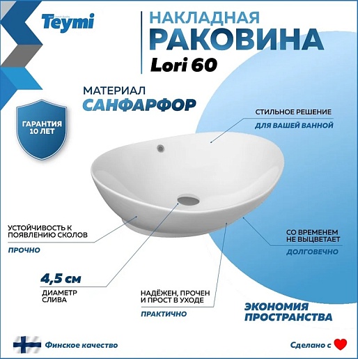 Teymi Тумба с раковиной Ritta 55 дуб эврика/белый матовый подвесная T60519 раковина T50503