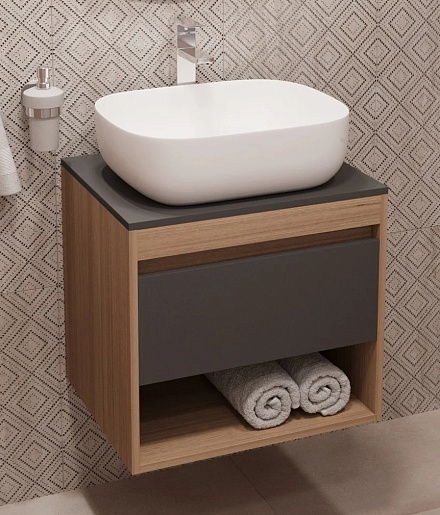 Teymi Тумба с раковиной Ritta 55 дуб эврика/графит матовый подвесная T60523 раковина T50204