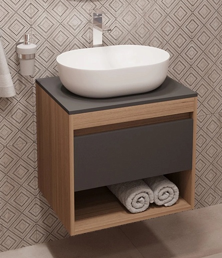 Teymi Тумба с раковиной Ritta 55 дуб эврика/графит матовый подвесная T60523 раковина T50208
