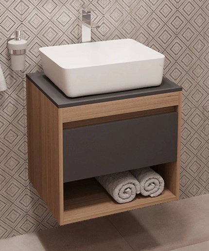 Teymi Тумба с раковиной Ritta 55 дуб эврика/графит матовый подвесная T60523 раковина T50302
