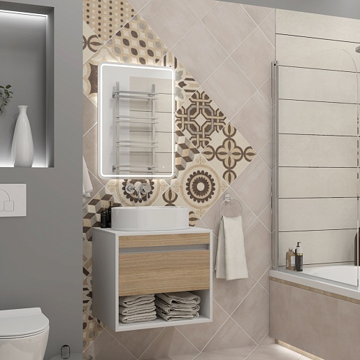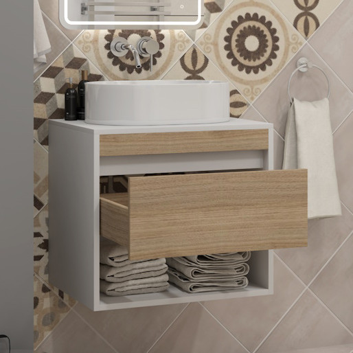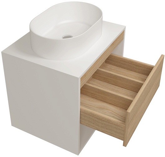 Подвесная тумба с накладной раковиной Teymi Ritta 55 Lori 50 белый/дуб - арт. T60537 / T50502.