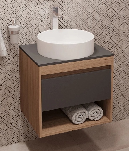 Teymi Тумба с раковиной Ritta 75 дуб эврика/графит матовый подвесная T60525 раковина T50105