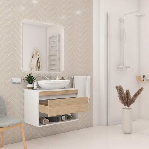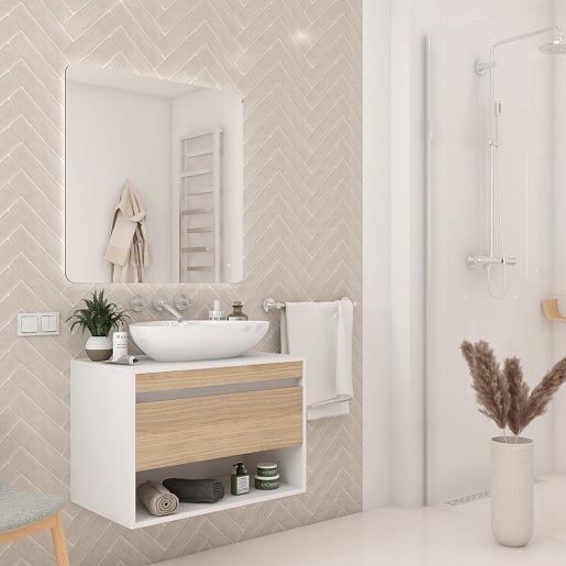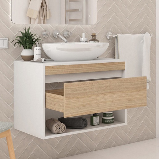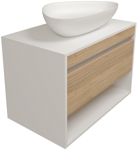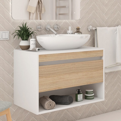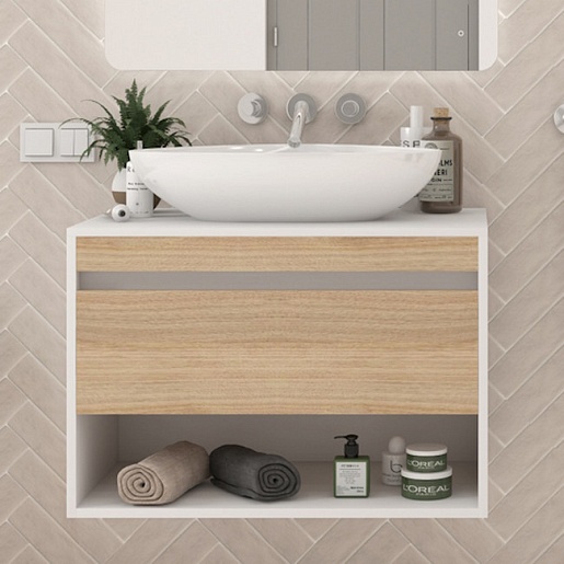 Подвесная тумба с накладной раковиной Teymi Ritta 75 Ellie 60 белый/дуб - арт. T60539 / T50802.