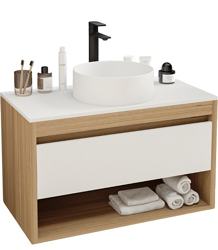 Teymi Тумба с раковиной Ritta 85 дуб эврика/белый матовый T60531 раковина T50106