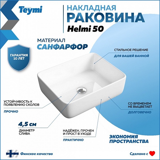 Мебельная раковина накладная Helmi 50 белая T50302