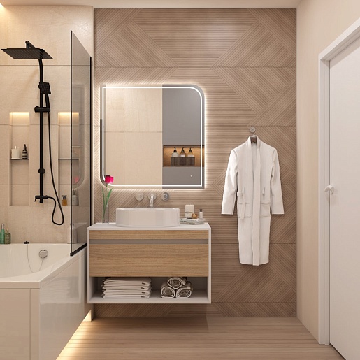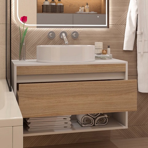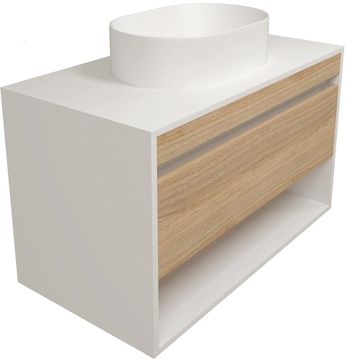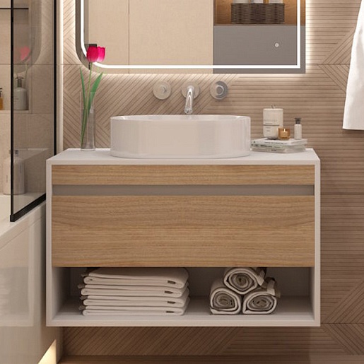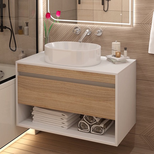 Подвесная тумба с накладной раковиной Teymi Ritta 85 Lori 50 белый/дуб - арт. T60540 / T50502.