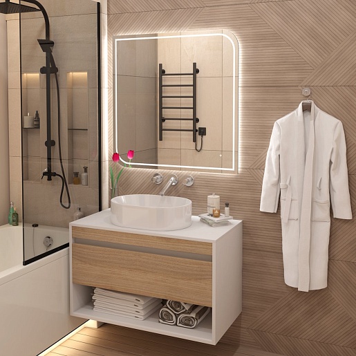 Тумба под раковину Ritta 85 подвесная белый/дуб