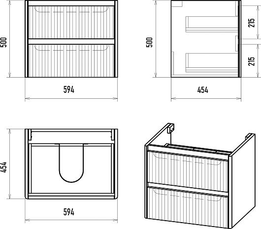 - 2 выдвижных ящика с направляющими скрытого монтажа.
