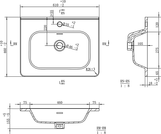 - Керамическая раковина со слив-переливом.