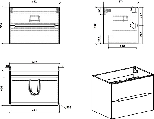 Тумба с раковиной Parly River 70 - арт. River70 (10107).