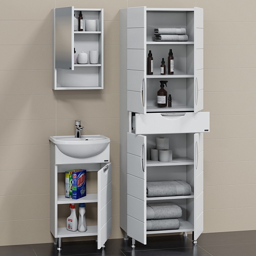 Комплектация: тумба под раковину, раковина, ножка (4 шт.).