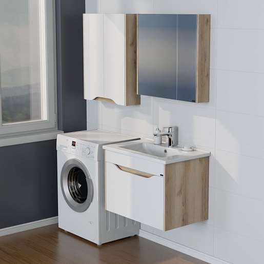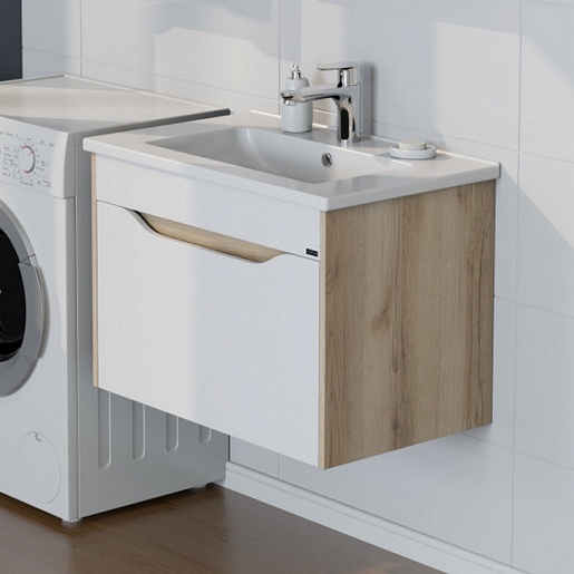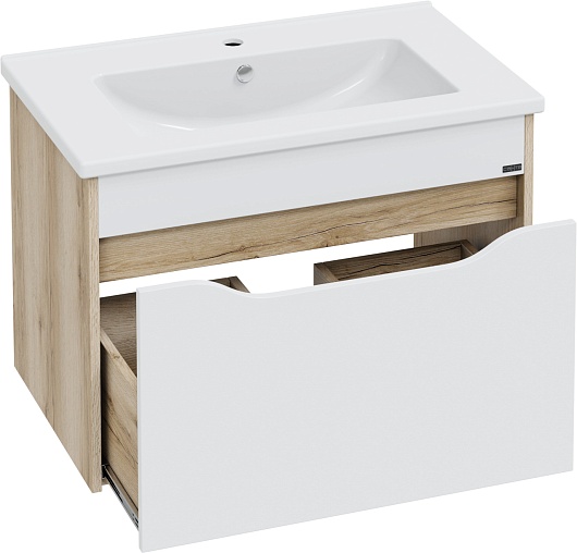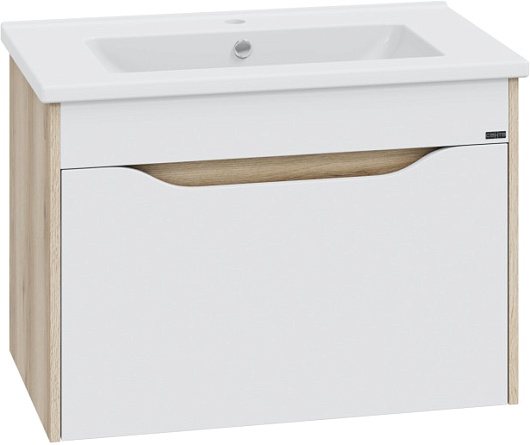 Тумба под раковину Сатурн 75 подвесная белая/дуб австрийский