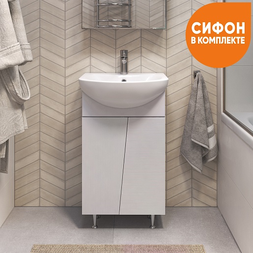В комплекте: тумба, раковина, сифон, ножка (4 шт.).
