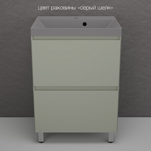 Style Line Тумба с кварцевой раковиной серый шелк Манхэттен 60 Plus эмаль олива матовая