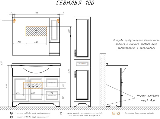 Comforty Тумба с раковиной Севилья 100 слоновая кость