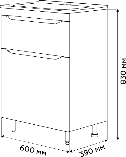 В комплекте: тумба, раковина, ножки.